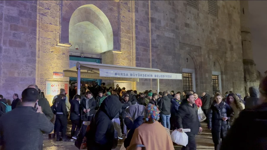 Programın ardından cami çıkışında Bursa Büyükşehir Belediyesi tarafından katılımcılara tatlı ikramında bulunuldu. Yağmurlu havaya rağmen cami ve avlu dolup taşarken, vatandaşlar kandil gecesini coşkuyla ihya etti.