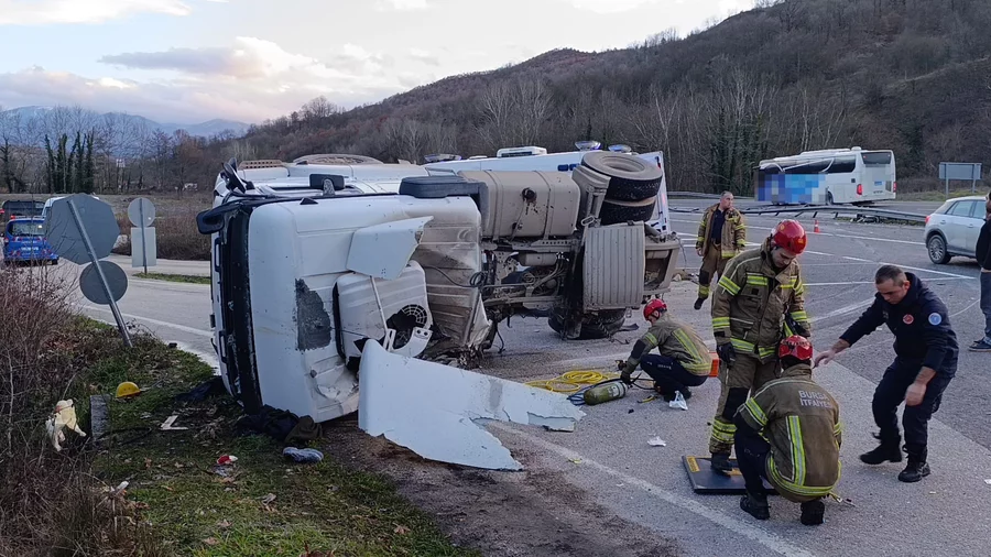 BURSA, 12 Şubat 2026 Perşembe, 09:14Kaza, saat 17.30 sıralarında Bursa-Ankara karayolu üzerinde, kırsal Yeniköy Mahallesi mevkiinde meydana geldi. Bozüyük'ten Bursa'ya doğru seyir halinde olan Mehmet G. (65) yönetimindeki 16 AGK 90 plakalı beton tankeri, virajda sürücünün kontrolünden çıkarak devrildi.