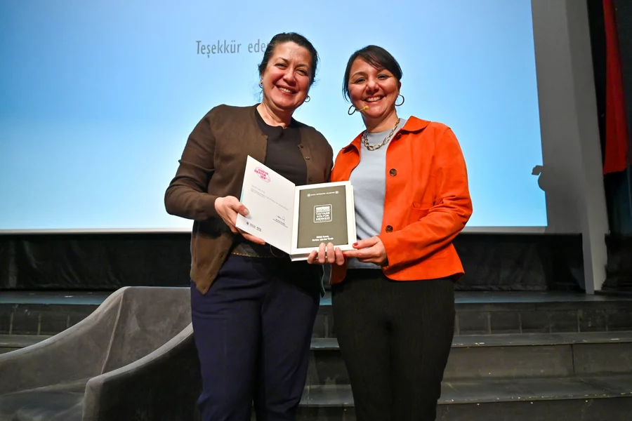 Programın sonunda Kültür, Sanat ve Sosyal İşler Dairesi Başkanı Şafak Baba Pala tarafından Yazar Burcu Ural Kopan'a günün anısına hediye verildi.