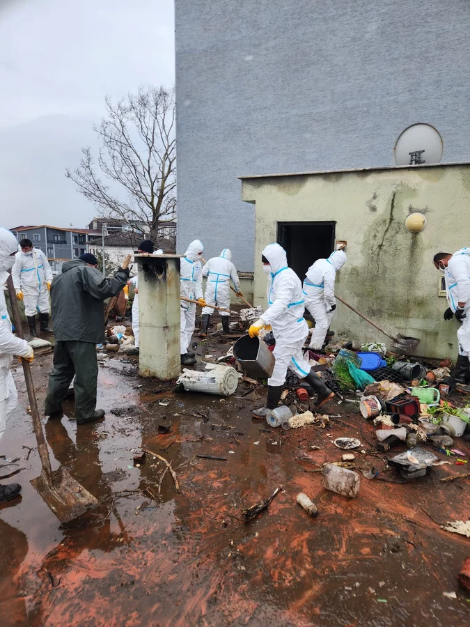 Temizlik işleminin ardından, çöplerin oluşturduğu bakteri, haşere ve kötü kokunun önüne geçmek amacıyla binanın içi ve çevresi detaylı şekilde ilaçlanarak dezenfekte edildi.