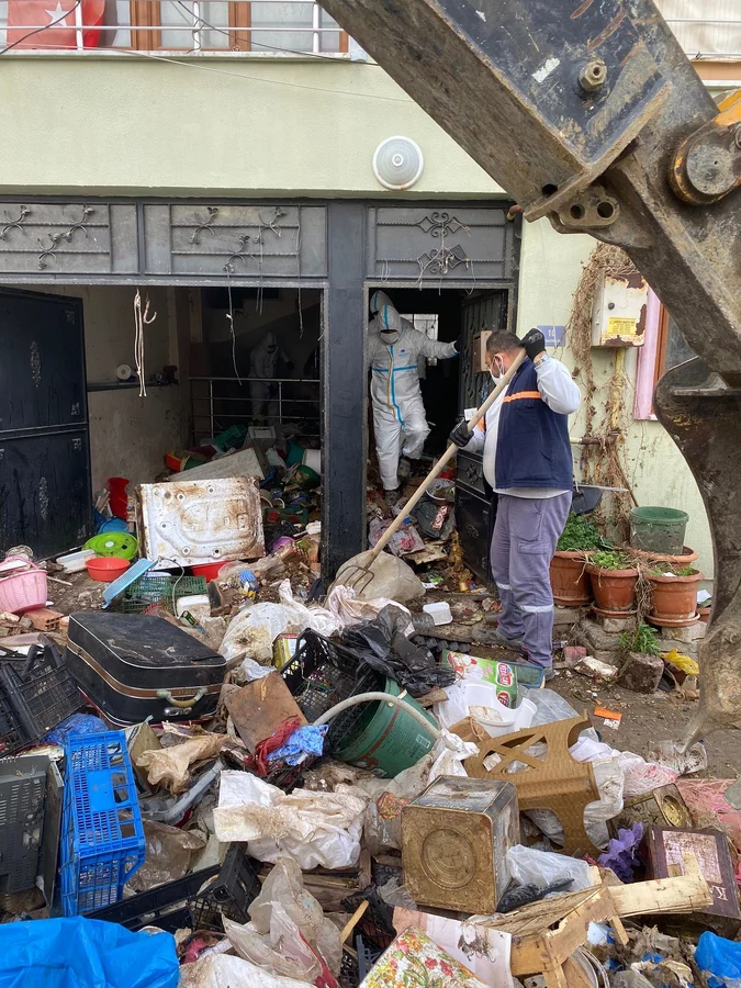 Çalışmalar sonucunda evin tüm bölümleri tamamen boşaltıldı. Binadan toplam 9 kamyon dolusu çöp çıkarılarak döküm sahasına taşındı.