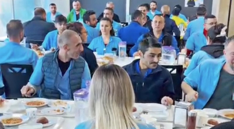 BURSA, 19 Aralık 2025 Cuma, 09:23Mudanya'daki Yazaki fabrikasında örgütlü metal işçileri, 2025-2027 dönemi Grup Toplu İş Sözleşmesi görüşmelerinde yaşanan anlaşmazlık sonrası öğle yemeği sırasında yemekhanelerde masalara çatal-kaşık vurarak ve sloganlar atarak protesto gerçekleştirdi.