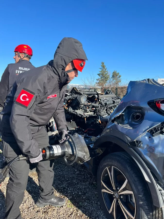 Hortum kullanımı ve söndürme prensipleri, iniş çıkış sistemleri, sedye ile tahliye uygulamaları, kaza yeri güvenliğinin sağlanması, hidrolik kurtarma ekipmanlarının etkin kullanımı ve yaralı tahliyesi gibi konular teorik ve uygulamalı olarak anlatıldı. Sahada karşılaşılabilecek gerçek durumların senaryolaştırıldığı eğitimlerde, itfaiyeciler özveriyle mücadele ederek yangını söndürdü.