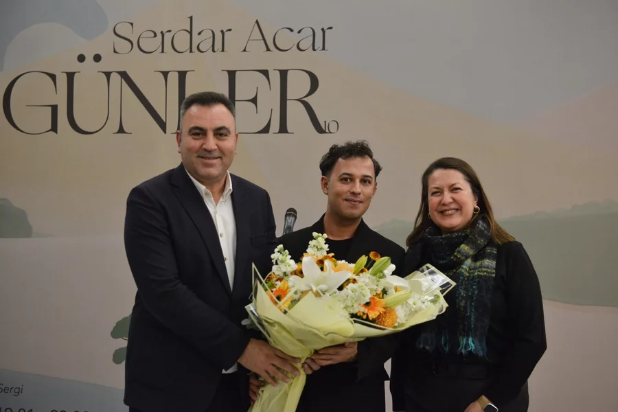 BURSA, 20 Ocak 2026 Salı, 14:25Serdar Acar'ın sanat kariyerinin 10. yılına eşlik eden 'Günler' sergisi, sanatçının son dönem üretimlerini bir araya getirerek sanatseverleri Tayyare Kültür Merkerzi'nde ağırladı. Tuval üzerine akrilik boya tekniğiyle üretilen, yalın ve duru resim diliyle kurgulanan 79 çalışmanın yer aldığı serginin açılışına Bursa Büyükşehir Belediyesi Başkanvekili Mehmet Aydın Saldız'ın yanı sıra, sanatçı Serdar Acar, Büyükşehir yöneticileri ve çok sayıda vatandaş katıldı.