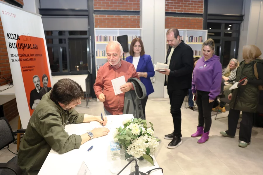 BURSA, 08 Nisan 2026 Çarşamba, 11:23Nilüfer Belediyesi tarafından düzenlenen Koza Buluşmaları, edebiyat dünyasının özgün isimlerini Bursalı okurlarla buluşturmaya devam ediyor. Koza Kütüphane'de gerçekleşen söyleşinin bu ayki konuğu, çağdaş Türk edebiyatının usta kalemlerinden Hakan Bıçakçı oldu. "Yamuk Zeminler, İnce Sızıntılar ve Geçici Manzaralar" başlığıyla düzenlenen etkinlikte Bıçakçı; 12. kitabı olan Geçici Manzara'dan yola çıkarak yazarlık serüvenini, dile yaklaşımını ve şehirle kurduğu ilişkiyi anlattı. Söyleşiyi çok sayıda edebiyatsever büyük bir ilgiyle takip etti.