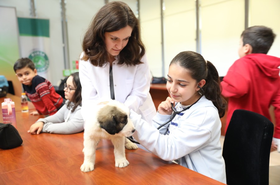 Veteriner İşleri Dairesi Başkanlığı ve Bursa Kent Konseyi iş birliğinde Atatürk Kültür Merkezi Merinos Yerleşkesi'nde yapılan etkinlikte, Büyükşehir Belediyesi Hayvan Barınağı'nda görevli veteriner hekimler tarafından mesleklerini tanıtıcı bilgilendirme yapıldı. Daha sonra veteriner hekimler tarafından getirilen köpek ve tavşan ile de uygulamalı etkinlik gerçekleştirildi. Hayvanların nasıl muayene edildiğini öğrenme imkanı bulan çocuklar, köpek ve tavşanı yakından görme, tanıma ve sevme fırsatı buldu. Veteriner hekimlere merak ettikleri soruları da yönelten çocuklar, keyifli ve öğretici bir gün geçirdi.