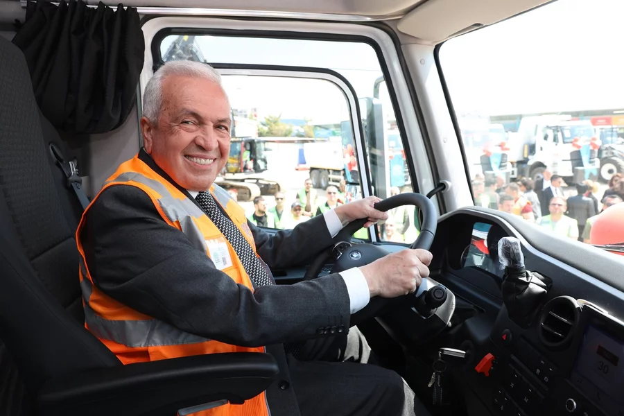 Törenin sonunda kamyonlardan birinin direksiyonuna geçen Başkan Şadi Özdemir, hizmete alınan araçların ilk sürüşünü gerçekleştirerek sürece sahadan eşlik etti.