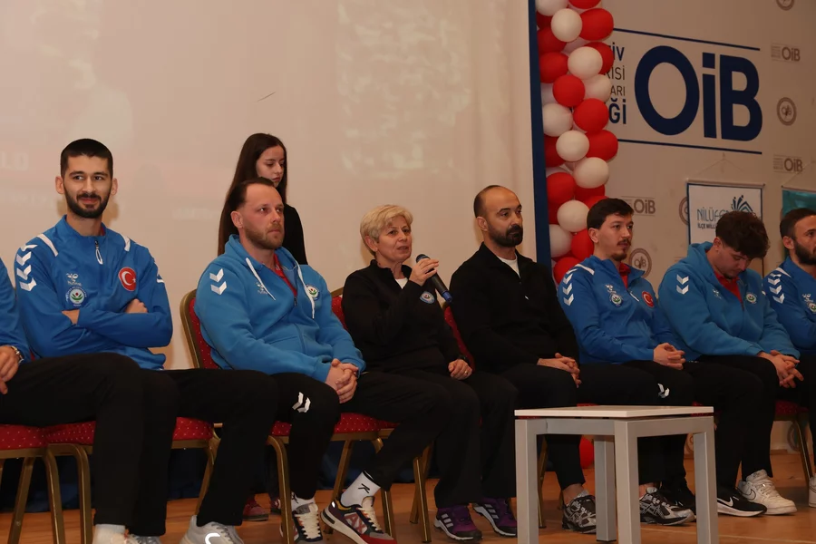 BURSA, 19 Şubat 2026 Perşembe, 15:17Nilüfer Belediyespor Erkek Hentbol Takımı, Otomotiv Endüstrisi İhracatçıları Birliği (OİB) Mesleki ve Teknik Anadolu Lisesi'nin "Hoba Yeşil Koltuk" programında ayın konuğuydu. Etkinliğin açılışında konuşan Okul Müdür Yardımcısı Mustafa İnan, sporcuların gençler için rol model olduğunu ve buluşmaların motivasyonlarını olumlu etkilediğini söyledi.