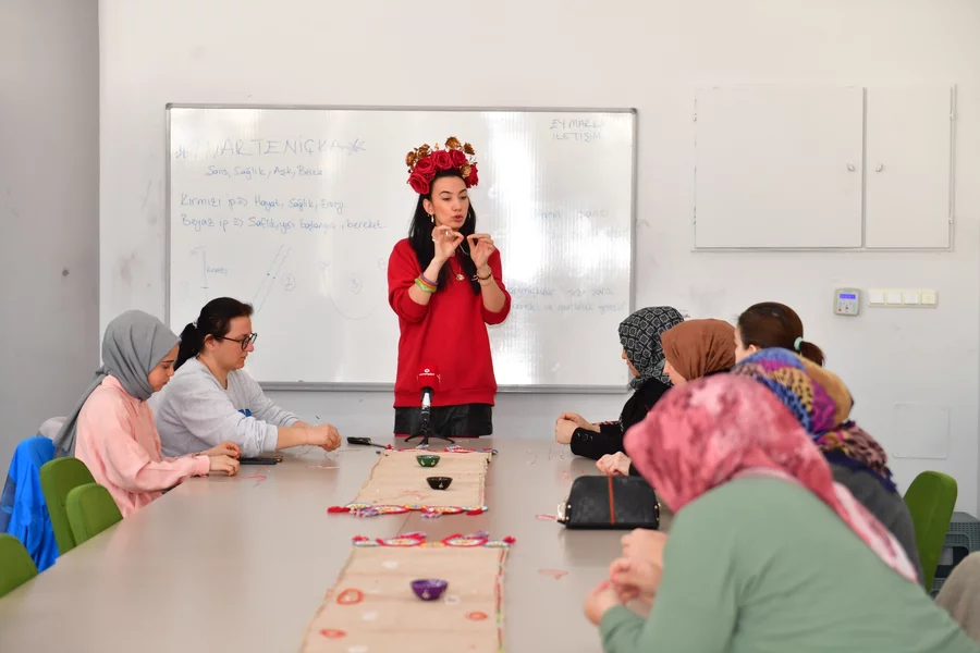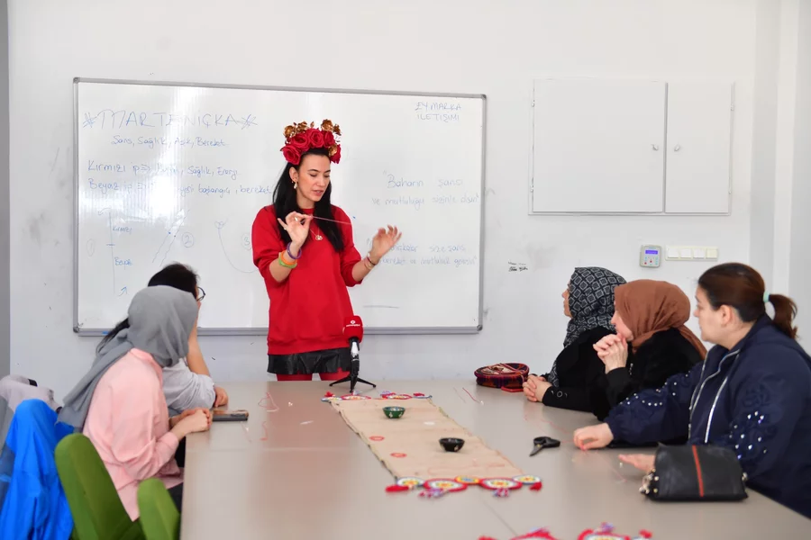 BURSA, 08 Mart 2026 Pazar, 12:48Atölye çalışmalarıyla Osmangazi'deki vatandaşları üretime ve kültürel paylaşımına teşvik ederek, kent yaşamına değer katan Osmangazi Belediyesi, baharın gelişini müjdeleyen 'Marteniçka Atölyesi'ni gerçekleştirdi. Demirtaş Kültür Merkezi'nde düzenlenen atölyede kadınlar, marteniçka bilekliklerini yaparak el becerilerini geliştirme şansı buldu. Samimi ve keyifli bir ortamda gerçekleşen etkinlikte kadınlar, marteniçka geleneğinin kökeni, anlamı ve Balkan kültüründeki yeri hakkında da bilgilendirildi.