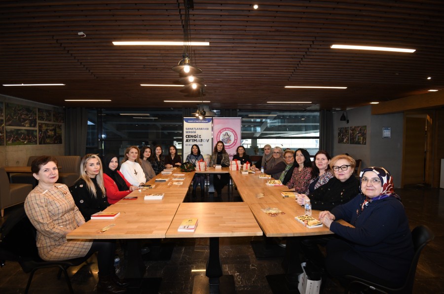 Cengiz Aytmatov'un Türk dünyası için edebiyatta önemli bir yere sahip olduğuna işaret eden Uludağ Üniversitesi Fen Edebiyat Fakültesi Türk Dili ve Edebiyatı Bölümü Öğretim Görevlisi Ayşe Energin, "Sanatlararası Sergisi'nde Cengiz Aytmatov dedik, bozkırdan dünyaya uzanan el, bozkırın sesi, bozkırın bilgesi dedik. Tam da buradan hareketle sergimizin kapanışını bir kolektif okumayla gerçekleştirdik. Burada kitapsever dostlarımızla birlikte Aytmatov'un 'Elveda Gülsarı' adlı kitabını inceledik." diye konuştu.