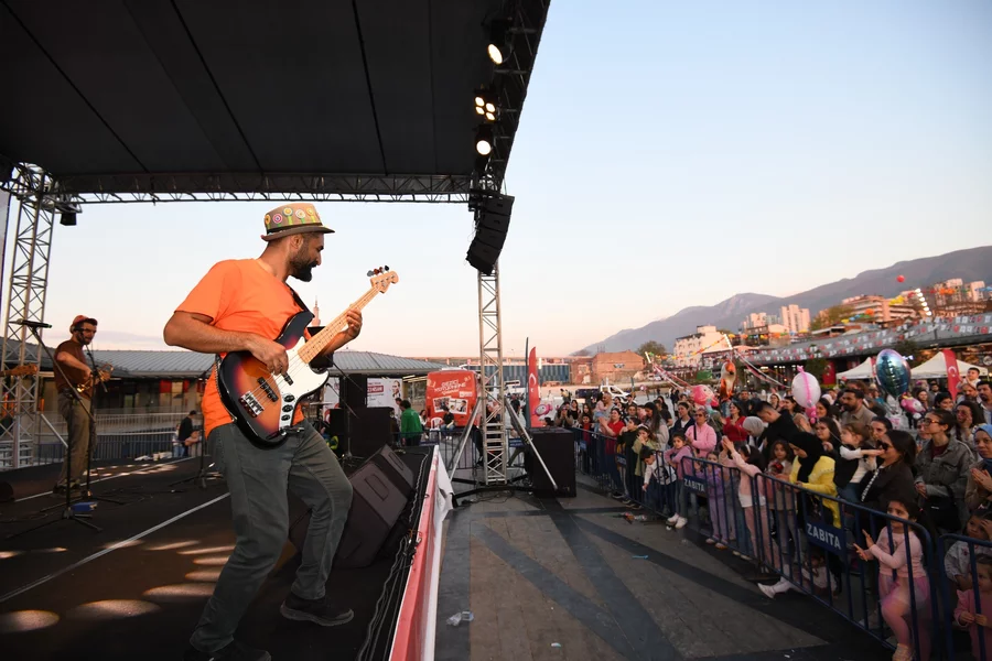 BURSA, 26 Nisan 2026 Pazar, 12:29Osmangazi Belediyesi'nin gerçekleştirdiği etkinlikler kapsamında Osmangazi Meydanı, çocuklar için adeta dev bir eğlence ve buluşma alanına dönüştürüldü. Üç gün boyunca süren programda birbirinden farklı aktiviteler, sahne gösterileri ve konserlerle çocuklar bayram sevincini doyasıya yaşadı. Gün boyu devam eden etkinliklerde çocuklar hem eğlendi, hem de sosyal ve kültürel açıdan zengin deneyimler kazandı. Etkinlikler çerçevesinde sahne alan sanatçılar da bayram coşkusunu zirveye taşıdı. Cahit Berkay ve Den Den konserinin ardından son gün sahneye çıkan Şubadap Çocuk, enerjik performansı ve eğlenceli şarkılarıyla çocuklara unutamayacakları anlar yaşattı. Ritim dolu melodiler eşliğinde dans eden çocuklar, bayramın ruhunu doyasıya hissetti.