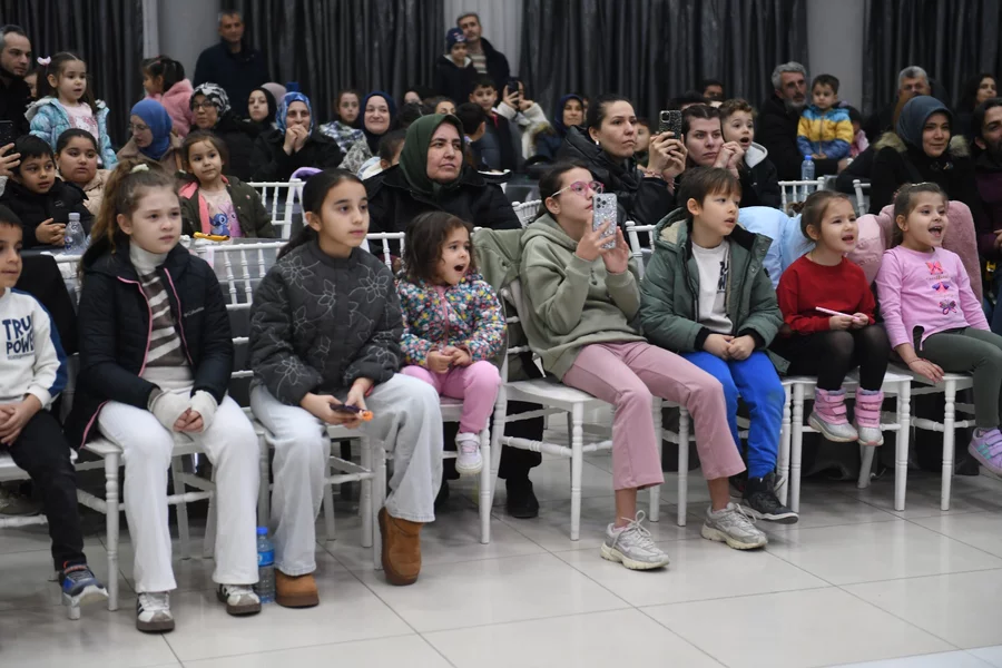 Program kapsamında sahnelenen sihirbazlık gösterisi de çocukların yoğun ilgisini çekti. Birbirinden ilginç numaralar sergileyen sihirbazın gösterileri sırasında çocuklar şaşkınlıklarını gizleyemezken, sahnede yaşanan renkli anlar salonda büyük bir heyecan yarattı. Sihirbazın gerçekleştirdiği numaraları büyük bir dikkatle takip eden çocuklar, gösteri boyunca alkışlarıyla ve kahkahalarıyla eğlenceye ortak oldu.