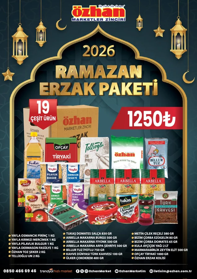 Özhan Market, her yıl olduğu gibi bu yıl da Ramazan'a özel hazırladığı zengin içerikli Ramazan paketleri ile dikkat çekiyor. Kuru bakliyat, kahvaltılık ürünler, temel gıda maddeleri ve içeceklerden oluşan bu paketler, isteğe bağlı olarak kişiye özel içeriklerle de düzenlenebilecek.