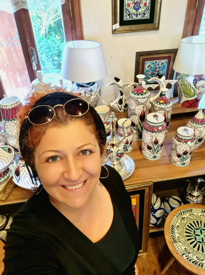 "Mavi benim için hem dinginlik hem de sınırsızlık demek. Çini ve yağlıboyayı bir araya getirirken, her eserde bu iki duyguyu hissettirmeye çalıştım. İzleyenlerin kendi mavilerini bulmasını diliyorum."
