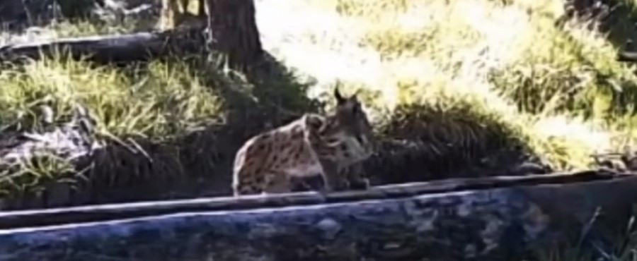 Hava sıcaklığının 40 derecenin üzerine çıktığı Çankırı'nın Ilgaz ilçesinde, nesli tehlike altında olan bir vaşak, bölgede bulunan bir yalaktan su içerek serinledi.