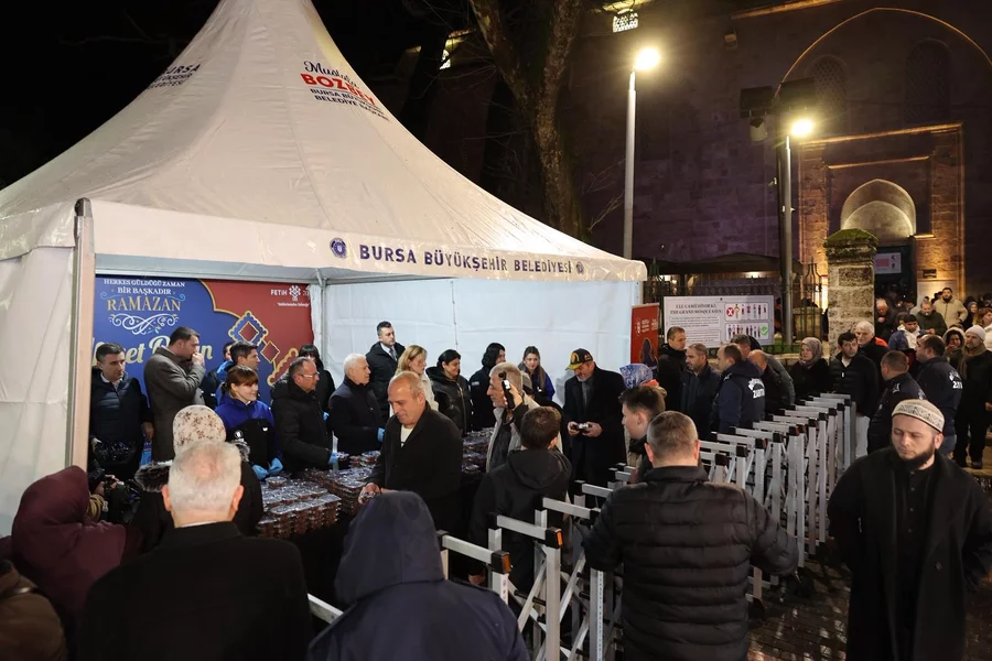 Büyükşehir Belediyesi Ulu Cami'nin yanı sıra farklı noktalarda teravih sonrası vatandaşlara tatlı ikramına devam edecek.