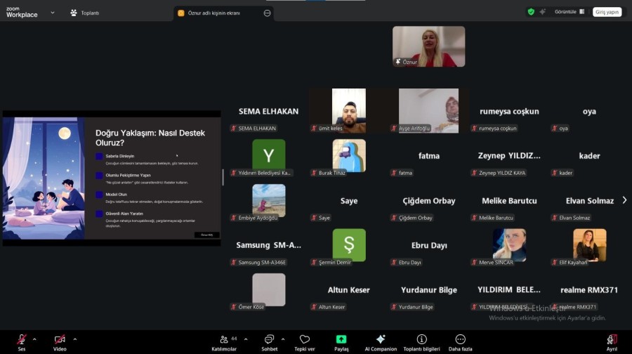 BURSA, 26 Aralık 2025 Cuma, 14:23Yıldırım Belediyesi, pandemi süreciyle birlikte çocuklarda artış gösteren konuşma bozuklukları ve bu durumun psiko-sosyal etkilerine dikkat çekmek amacıyla farkındalık çalışması gerçekleştirdi. Sosyal belediyecilik anlayışıyla hayata geçirilen çalışma kapsamında, velilere ve alanda görev yapan uzmanlara yönelik bilgilendirici bir seminer düzenlendi. Online olarak düzenlenen seminerde konuşan Psikolojik Danışman ve Dil ve Konuşma Bozuklukları Uzmanı Öznur Kuş, pandemi sonrası dönemde konuşma bozukluğu şikayetlerinde bir artış yaşandığını ifade ederek, erken farkındalık ve doğru yönlendirmenin çocukların gelişimi açısından kritik öneme sahip olduğunu belirtti.
