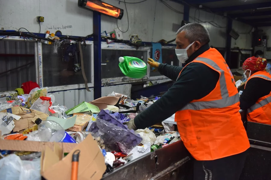 BURSA, 24 Mart 2026 Salı, 16:08Sıfır atık ve çevre konularında örnek projelere imza atan Yıldırım Belediyesi'nin, Bursa'ya kazandırdığı Ambalaj Atığı Toplama ve Ayrıştırma Tesisi doğaya can oldu. Çöpe giden ambalaj atığı ve kağıtların miktarını azaltmak ve geri dönüşümünü sağlamak amacıyla 2022 yılında hizmete açılan tesis, bugüne kadar yaklaşık 15 bin ton atığı geri kazandı. Bin metre karelik kapalı alanda hizmet veren tesiste, ayda 300 ton atık ayrıştırılarak ekonomiye kazandırılıyor.