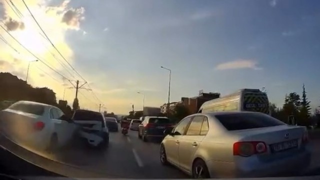 Bursa'nın Nilüfer ilçesinde duran trafikte zincirleme kaza anı otomobilin kamerasına yansıdı. Araçların kullanılmaz hale geldiği kazada bir motosikletli ise ölümden döndü.